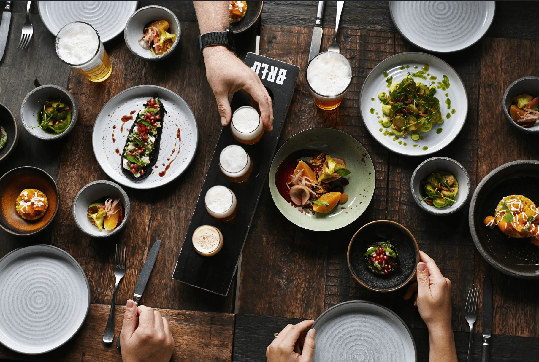 GRAFT Architects are responsible for the unusual concept and the unique building. The innovative design of the containers with large glassed areas continues inside. On two stories, modernity and clarity are combined with coziness at solid wooden tables. Besides the building, the absolute highlight is the location of BRLO BRWHOUSE: in the middle of Berlin, in the middle of the Park am Gleisdreieck and with a view of the next door subway bridge and passing trains.